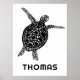 Poster Tartaruga do Mar Cento NOME PERSONALIZÁVEL DE BEBÊ