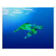 Uma pintura digital de uma tartaruga marinha ameaçada em blues oceânicos e verdes suaves nadando debaixo d'água em mares azuis calmos.