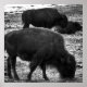 Três Bison americanos pastam entre seus rebanhos a oeste de Denver, Colorado perto da cova de Buffalo Bills.