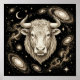This artwork embodies the essence of Taurus—steady, resilient, and deeply connected to beauty and the natural world. A symbol of stability and quiet power, the design blends earthy strength with cosmic elegance, resulting in a harmonious and enduring visual statement.