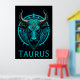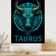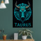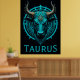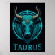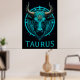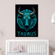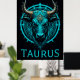 Poster Taurus Zodiac Símbolo em Azul Vibrante e Dourado A