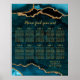 Poster Teal Blue and Gold Agate Wedding Seating Chart