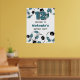Este poster de festa de aniversário de boas-vindas de temático de futebol é totalmente personalizável e apresenta esferas de futebol preto, branco e lacrimogêneo organizadas aleatoriamente e sombreadas seletivamente para dar uma aparência 3D única - personalize sua mensagem personalizada e a idade da criança ou personalize o texto para se adequar ao seu evento - por katz_d_zynes