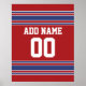 Cores Vermelhas, Brancas e Azuis — Se você é dono de uma equipe de futebol de Fantasia, faça seus próprios produtos e mostre aos seus amigos! Ou... você joga futebol Segundo grau e quer uma lembrança? Esta design de camisa é perfeita para qualquer um que joga esportes.