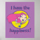 Starfire celebra seu maravilhoso humor neste gráfico adorável que diz: "Eu tenho a felicidade!" em texto roxo e rosa. Peguem seus Titãs Adolescentes! Imagem de fogo em uma camisa, bolsa de tote, caneca ou qualquer um de seus produtos Zazzle favoritos! Você pode alterar a cor e o estilo de seus produtos nas opções de estilo listadas ao lado do produto.