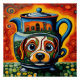 A.I. criou impressão surreal de um Panda a espreitar de um bule de chá colorido, rodeado por um mosaico vibrante de formas geométricas, padrões de matizes arrojados.