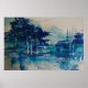 Cena de abstrato de aquarela em tons de blues e chaleiras.