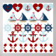 O Tema Náutico De Verão Anchores De Velas Ajudam Os Corações. Aqui está um divertido design de navegação náutica de verão com barcos de vela, hélio de navio, âncoras, preservadores de vida, e corações com estrelas e âncoras neles. Cores náuticas tradicionais de vermelho, branco e azul. "náutica" "vela" "Verão" "embarcações de vela" "âncoras" "âncoras" "conservadores de vida" "náuticas" "náuticas" "veleiros" "náuticas" "marinheiro" "barco"