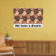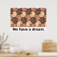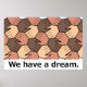 Mãos de várias cores da pele se aproximando — com o texto "Nós temos um sonho." Um design gráfico enselador de Susan EileenEvans