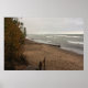 Uma vista sombria da costa do Lago Superior enquanto ondas impulsionadas pela tempestade rolam para uma praia arenosa tranquila perto de Calumet Waterworks. O céu abafado e a água varrida pelo vento criam uma cena crua e atmosférica dos Grandes Lagos perfeita para decoração costeira e inspirada na natureza.