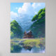 Neste trabalho de arte digital, um pequeno e calmo templo japonês está rodeado por uma floresta verde adorável, tal como se encontra no leito do rio. As águas tranquilas do rio sereno refletem o céu acima e a forma requintada do templo enquanto passam suavemente. O estilhaço de folhas e de aves a bater papo enche a floresta que rodeia o santuário.