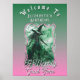 Um Tempo Maravilhosamente Mau Sinal de Boas-Vindas de Aniversário da Bruxa Verde - Um tempo maravilhosamente mau espera por você na sua próxima festa de aniversário com este sinal de boas-vindas de aniversário único. Apresenta um desenho esboçado de uma bruxa verde malvada usando um chapéu verde e vestido verde com sombreamento preto e branco. Uma borda rabiscada rosa emoldura a imagem. A fonte estilo retrô e vintage adiciona ao sentimento mágico do design com um fundo gradiente ombre verde e rosa. Perfeito para meninas e mulheres que amam Halloween, magia e fantasia de encantamento ou coisas assustadoras. Personalize este modelo de sinal de boas-vindas de aniversário com seu próprio nome.