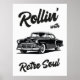 Celebrar a elegância do passado com este gráfico preto-e-branco impressionante com um carro vintage e a frase "Rollin' com Alma Retroativa." A paleta de cores minimalista destaca os detalhes complexos do carro, fazer-o uma peça perfeita para entusiastas de automóveis clássicos e design refinada.