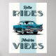 Traga o passado para o presente com este na moda gráfico que apresenta um carro vintage clássico, emparelhado com o texto em negrito 'Retro Rides, Modernos Vibes'. Perfeito para quem aprecia o design eterno e uma reviravolta contemporânea, essa peça exude charme e personalidade para qualquer espaço ou coleção.