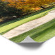 Árvores coloridas de outono num campo de golfe bucólico.