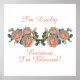 Traga alguma sorte e bençãos com rosas cor-de-pêssego cor-de-rosa e uma ferradura ouro para a poster de arte de decor em casa. "Tenho sorte porque sou abençoada" citação espiritual.