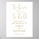 Este sinal de boas-vindas de casamento com guião dourado pode ser personalizado com todas as suas informações especiais sobre o dia do casamento. Projetado por Thisnotme©
