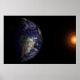 20 de março de 2013 - Vista da Terra em seu equinócio, quando o ângulo relativo da Terra é perpendicular ao Sol, causando energia solar de entrada igual para os hemisférios Norte e Sul, assim como igual dia e noite. O Sol nesta imagem é criado artificialmente.
