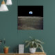 Durante uma missão na Lua em que uma nave espacial enviada pelos EUA pousou na superfície da Lua. Os astronautas tiraram esta imagem da Terra no espaço acima do horizonte da lua. Imagem do dominio público