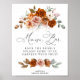 Cartaz de bar de mimosa floral em terracota elegante e laranja queimada com flores suaves em aquarela. Perfeito para decorar a estação de bebidas do seu chá de noiva.