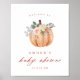 Um poster de boas-vindas ao chá de fraldas de outono com uma abóbora de aquarela terracotta com rosas de aquarelas e "chá de fraldas" em fontes modernas de caligrafia. Personalize com detalhes do chá.