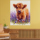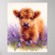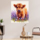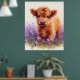 Celebrar a beleza pastoral da Escócia com esta poster que mostra um vitelo de vaca Highland rodeado por flores roxas e peludas. Perfeito por adicionar encanto rústico a qualquer espaço, ele captura a essência serena do campo escocês em detalhes vibrantes.