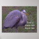 O Herão Azul Excelente na fotografia original deste poster mostra sua plumagem, enchendo suas penas para se fazer parecer maior, para deixar os outros pássaros saberem que é seu território. Na foto, o herão está nos olhando, em sua cinza, corante azul e rosto branco com bandas azuis profundas em cada lado. Seu longo bico amarelo está apontando para a frente e seu pescoço longo e curvo está preso contra seu corpo. O fundo das gramíneas está em tons de terra mutada com pedaços de verde ao longo. Há um texto branco na poster no canto inferior direito que diz "Pensar no Dia da Terra Todo Dia". Isso pode ser alterado ou excluído se desejar.