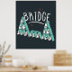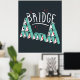 Legal design com uma estrutura feita de cartas de jogar e a palavra BRIDGE.