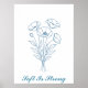 Poster Texto Personalizado Blue Poppy Botanical Line Art