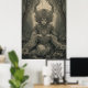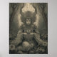 Enter a world of ancient mystery with 'The Dark Seer'. This powerful illustration features a mystical priestess adorned with majestic curved horns and an incredibly detailed floral headdress. Seated amidst a garden of dark roses and surrounded by gnarled, ancient trees, her gaze is both commanding and enigmatic. This monochrome masterpiece, is a must-have for fans of dark fantasy, gothic aesthetics, and intricate line art