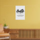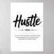 This impactful wall art poster serves as a dynamic reminder of what it truly means to "Hustle." The word itself is boldly presented in a raw, brush-stroke-like typography, conveying a sense of energy, determination, and relentless action.
