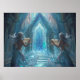 Scrolls in hand, they stand as keepers of ancient lore, bathed in radiant blue and turquoise light.