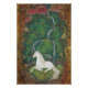 Step into a world of pure enchantment with this captivating Japanese Nihonga masterpiece, now available as a high-quality poster print. This artwork draws you into a secluded, sacred space, where a majestic unicorn rests in a tranquil garden. The scene is viewed through what appears to be an intricate, stained glass-like window, adding to its mysterious and dreamlike quality.