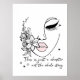 A minimalist, abstract line-art portrait of a woman's face, featuring soft pink lips and a delicate flower near the mouth. The design uses clean black outlines and simple shapes, creating a modern, elegant aesthetic.