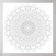 Mandala digital do Sahasrara ou Crown Chakra na tradição Hindu/Yogic retratada como mil lótus mandala petalados. Poster de preto em branco.