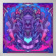 Uma ilustração visualmente impressionante e intrincada que retrata uma figura esquelética adornada com um capacete corado e cercado por águias aladas e ornamentados, elementos decorativos. A figura está sobre uma estrutura semelhante ao trono, segurando machados e uma faixa com um símbolo cardíaco.