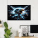 A águia majestosa sobe contra um pano de fundo dramático de raios.