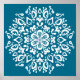 Esta mandala branca senta-se sobre fundo lacrimogêneo. As cores são muito calmantes e pacíficas. Parte da coleção Pras Mandala.