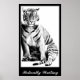 A Tiger in black and white art sitting. You can also customize this poster with your own sayings.