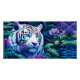 tigre branco de olhos azuis em folhas tropicais e flores roxas AI Art por minx267