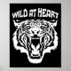 Selvagem No coração, citações de texto e design de gráfico de tigre branco rugindo no estilo da arte do stencil. trabalho de arte simples para amantes de tigre.