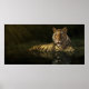 Pintura digital de um belo tigre desfrutando do resfriamento no buraco de água local. Os raios de luz do início da manhã brilhando.