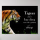 Uma bela foto de um tigre e uma citação motivacional "Tigres não dormem perder sobre a opinião das ovelhas" escrita sobre ele.