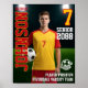 Cartaz personalizado de esportes para atletas seniores e jogadores de esportes. Este modelo de design personalizável é perfeito para eventos esportivos de recepção em casa, noite de gala, banquete de premiação esportiva ou decoração de festa de formatura para seu filho atleta, filha ou estudante. É uma ótima maneira de exibir o retrato do jogador e memórias de seus jogos esportivos. O design apresenta um fundo abstrato e pode ser personalizado com nomes, número da camisa do jogador, equipes escolares ou qualquer texto personalizado. Torna-se um presente único e significativo e decoração para o seu jogador.