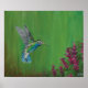 Esta é uma impressão de uma pintura acrílica de um pássaro e flores