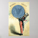 impressão americano do século 19 retratando o entusiasmo do Tio Sam pelo Padrão Prateado. Sam viu segurando um Dólar de Prata Morgan, acima do dólar, as palavras 'Segurança, Equidade'.