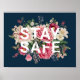 Design de tipografia floral moderna e elegante com as palavras "Fique Seguro". Disponível em várias cores para se adequar à sua ocasião.