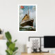 A ilustração feita pelo artista do Titanic da White Star Line no mar, uma imagem clássica da era do ouro de navio a vapor.
