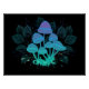 Misteriosos, bioluminescentes, alucinogênicos, ferramentas brilhantes com arbustos de plantas pântanas à noite, fundo escuro e brilhante. Cogumelos brilhantes. Goblincore, Mushroomcore