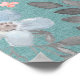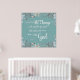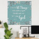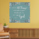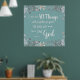 Poster com tipografia branca angustiada sobre fundo aqua texturizado cercado por flores aquáticas, com verso bem conhecido dos romanos 8:28, "... Todas as coisas funcionam juntas para o bem daqueles que amam Deus..."